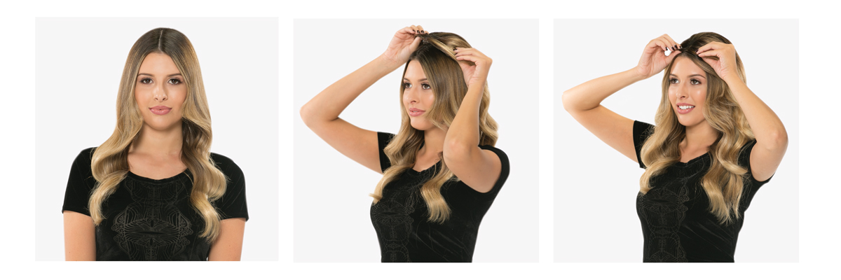 The Fall can easily transform your hair in a matter of seconds! Placed at the crown of the head, The Fall is secured by four comfortable, silicone-coated clips that attach to your natural hair while remaining damage free. The hair is hand tied into a breathable weft, which allows it to be redirected to blend with your natural hair.